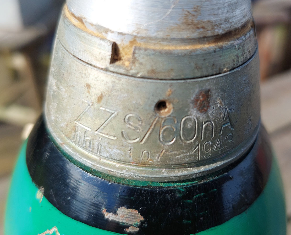 Spissen er produsert i aluminium og stemplet ZZS/60nA + hhj + 10/ 1943 + W + Waffen Amt. 25.