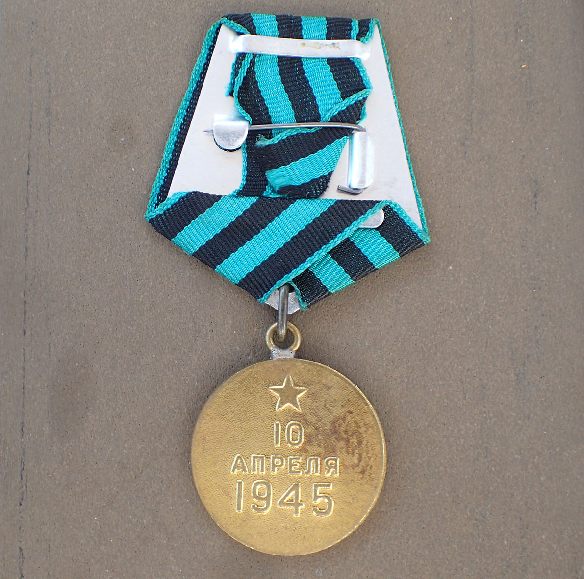 RUSSLAND. Medalje for frigjøringen av Königsberg 10 april 1945. I messing. Med nål bak på båndspennen.