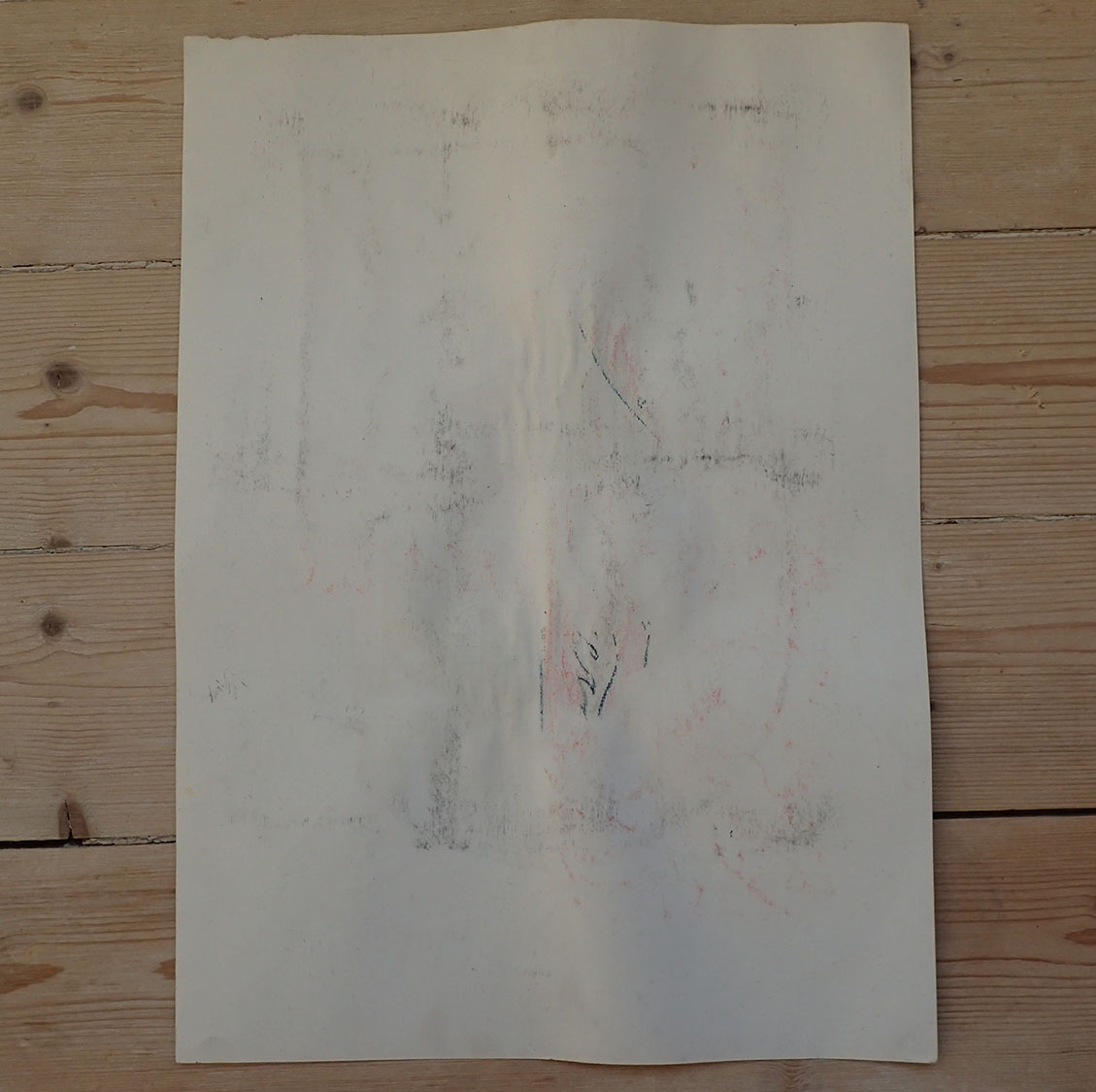Akvarell håndmalt på kartong papir som måler 41 x 29 cm. Med påskrivelser med blyant.