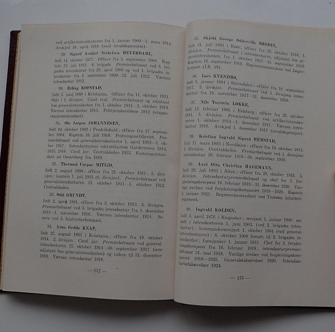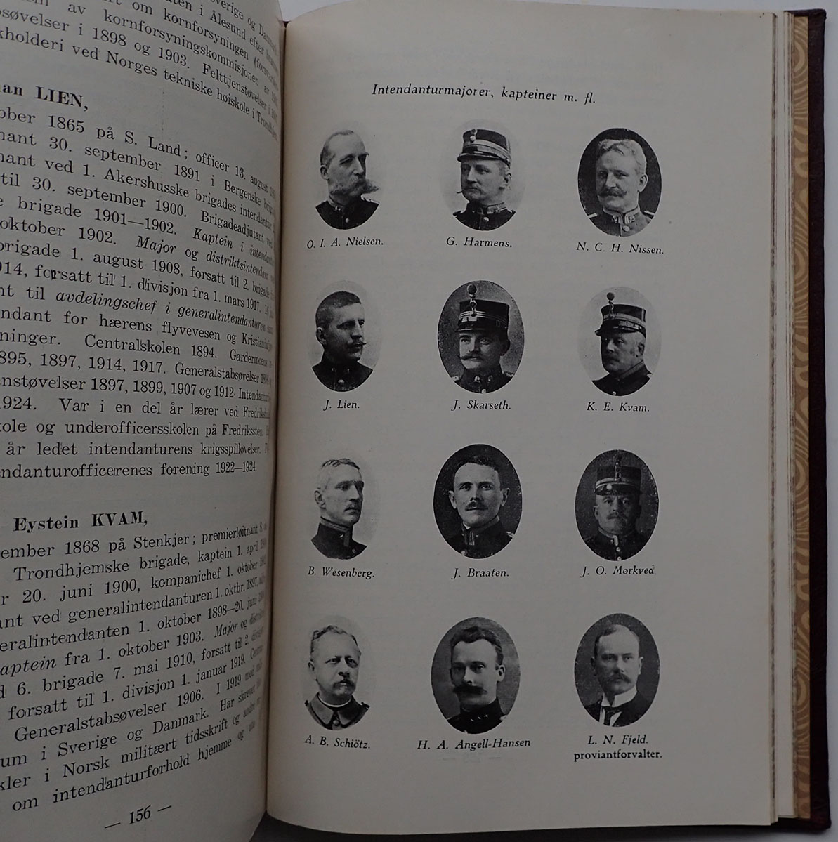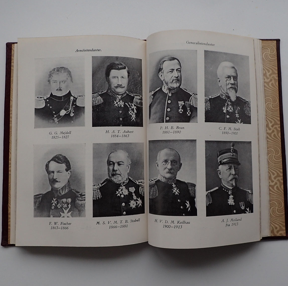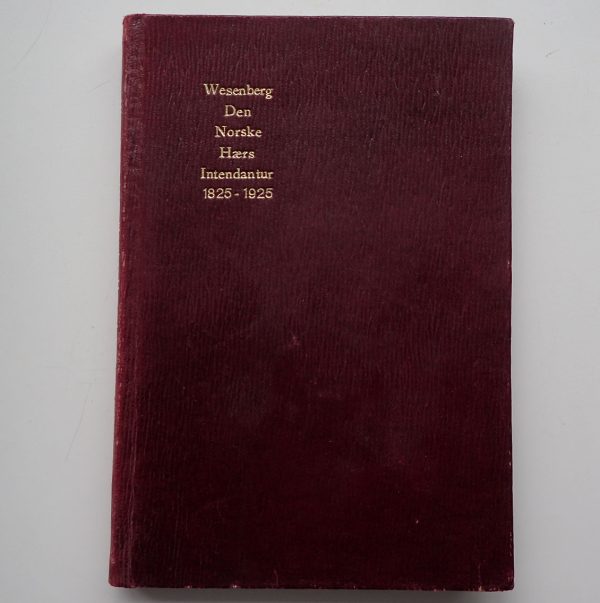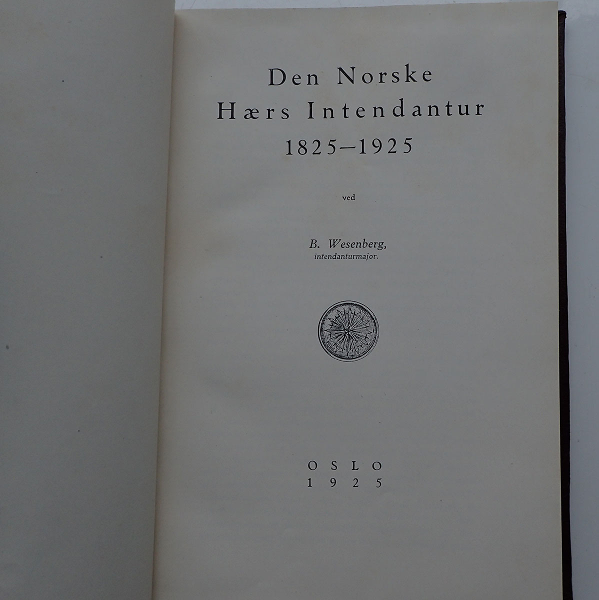 B. Wesenberg. Den Norske Hærs Intendantur 1825-1925. Trykket i Oslo i 1925. 198 sider trykket på glatt papir og med stive permer. Med permer i lilla skinn med gull trykk.