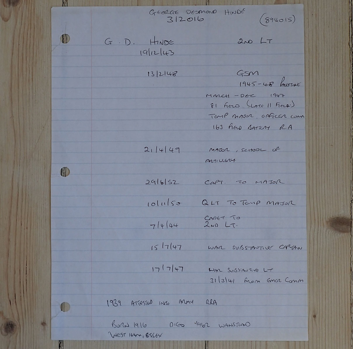 Det følger også med ett håndskrevet A4 ark som beskriver hans militære karriere.