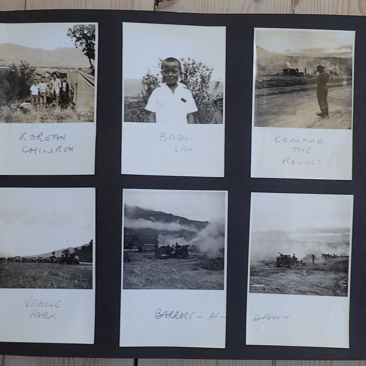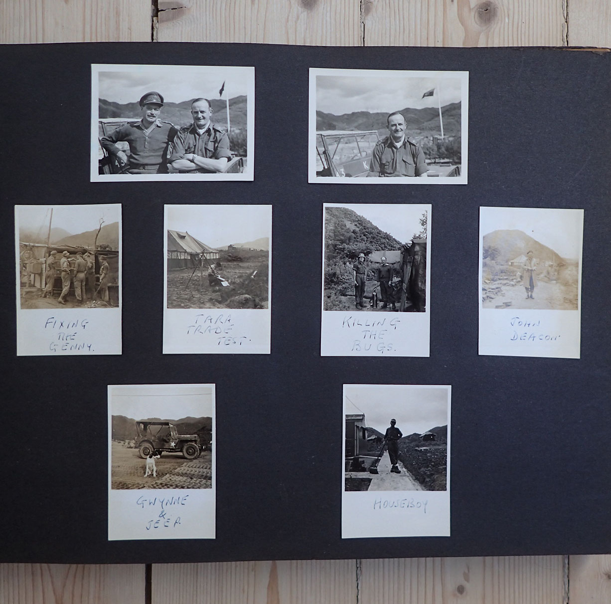 ENGLAND. Fotoalbum tilhørende artilleri-Major G.D. Hinde som tjenestegjorde i Koreakrigen. Fotoalbumet har tilhørt Major George Demond Hinde. Født i West Ham, Essex i 1916. Død i Wanstead i 1962. (kun 46 år gammel).