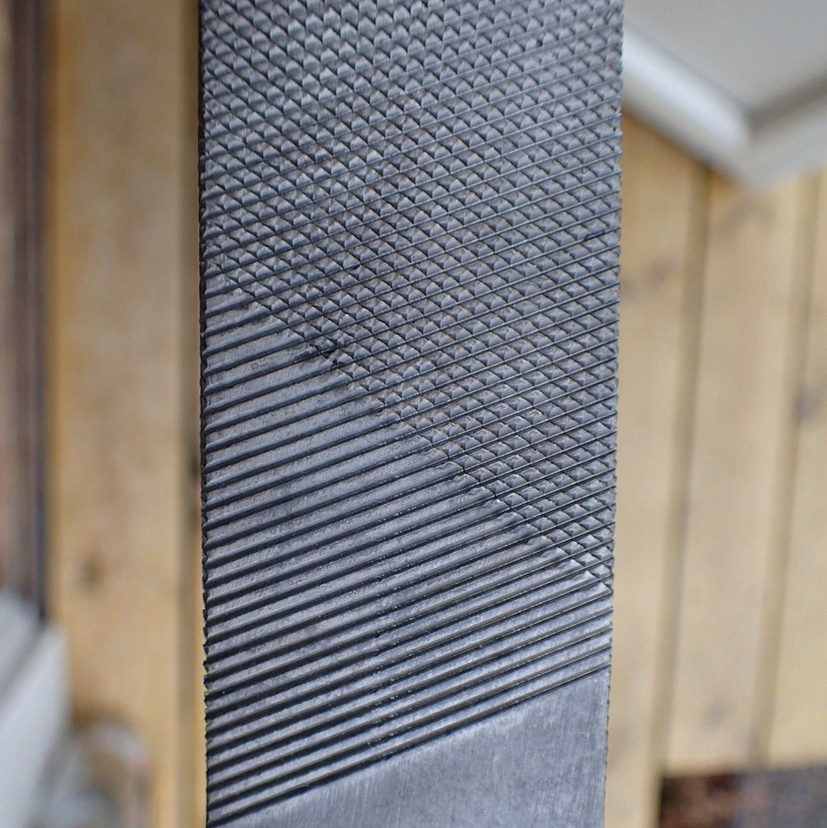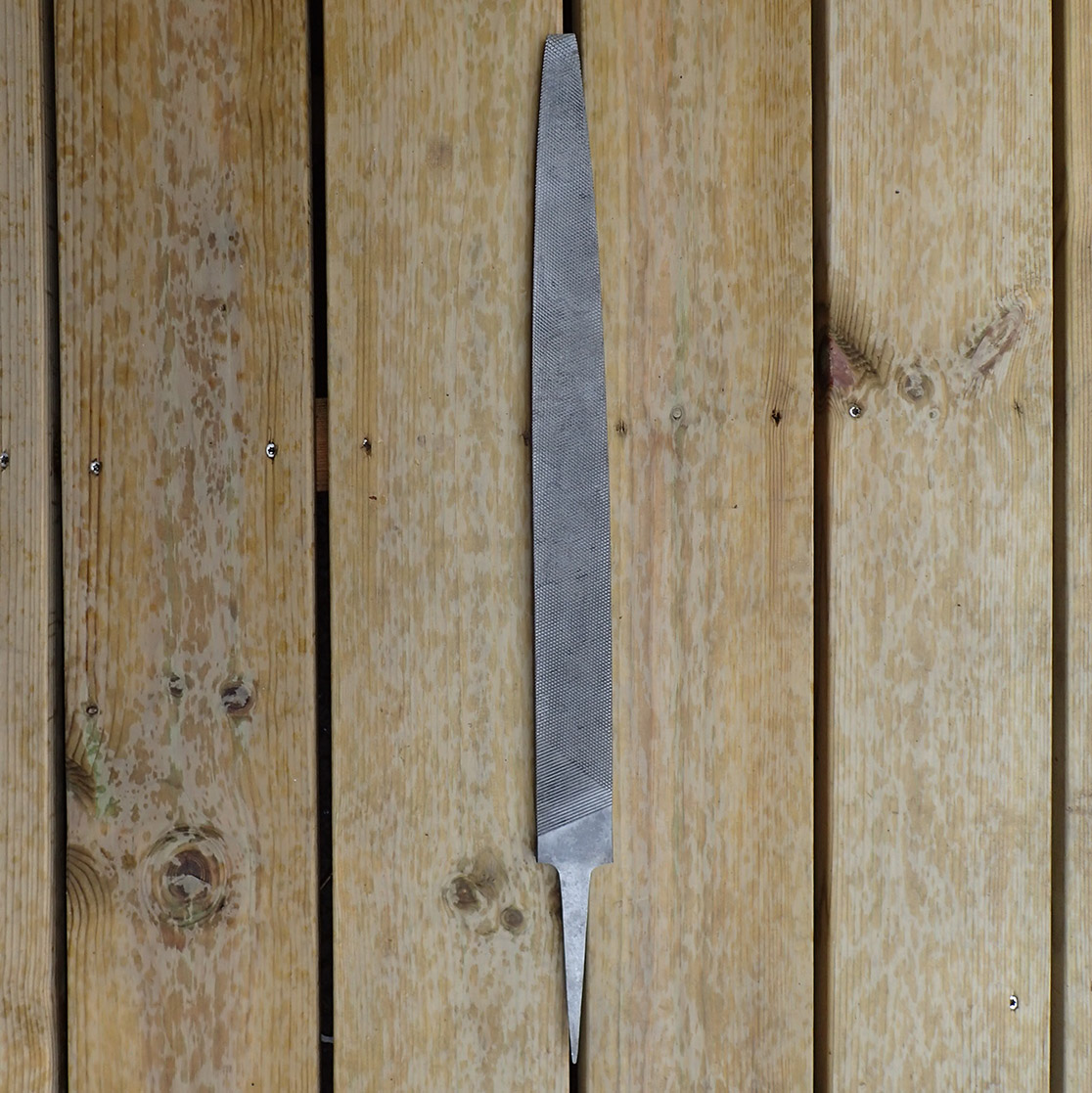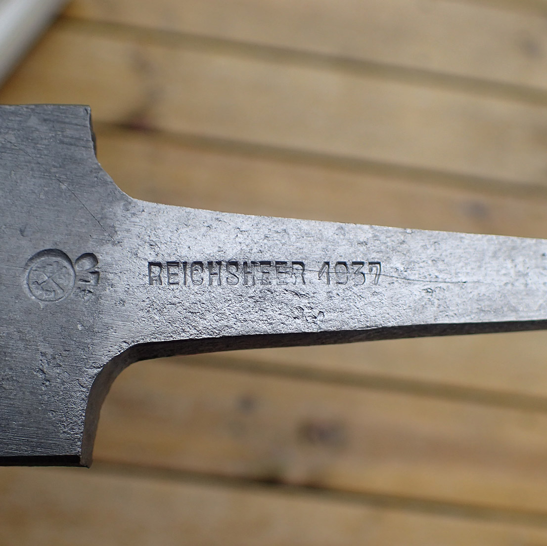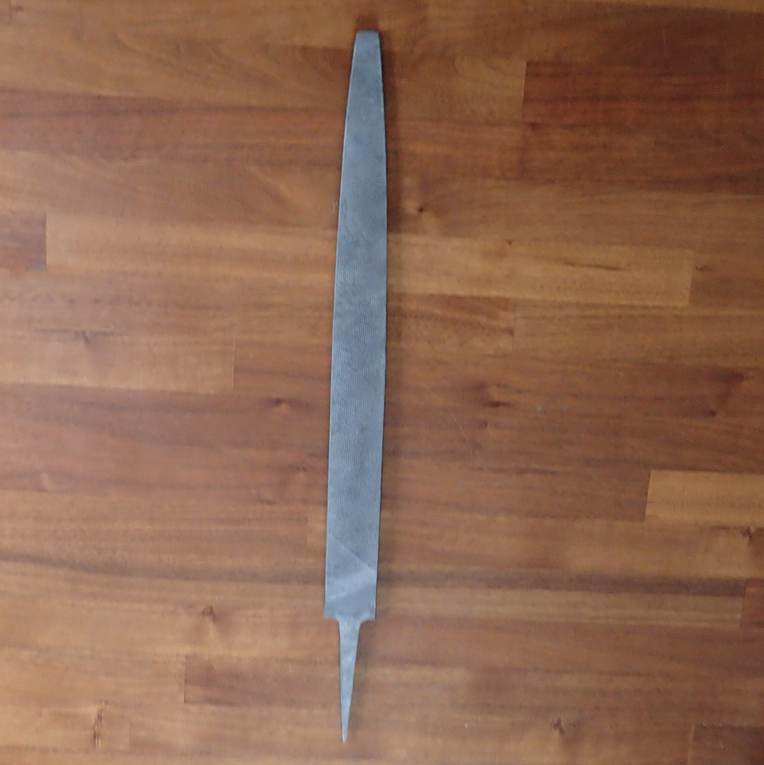 Fil. Fil som ble brukt på alle frontavsnitt og spesielt i felt-verksteder. Dette er en kraftig fil med grove spor. På tangen nydelig stempling med produsenten E & L med korslagte hammere og ELO + REICHSHEER 1937.