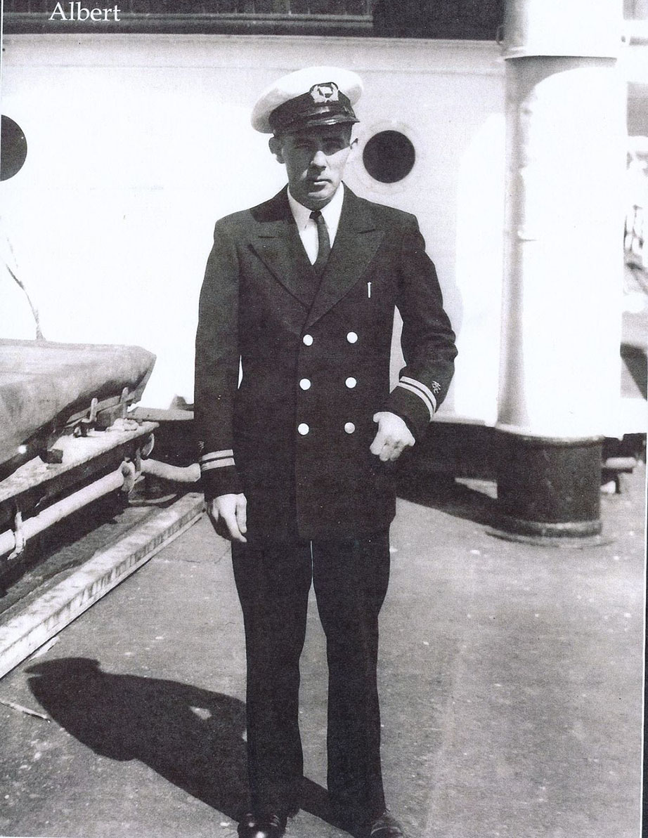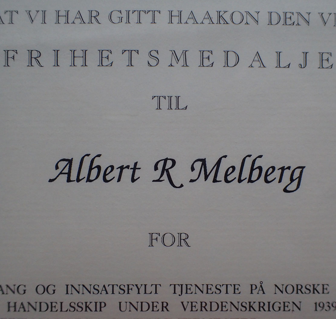 - Albert Racine Melberg ble født den 15. mars 1921 i Stavanger. Under krigen mønstret han på 5 forskjellige fartøyer. Alle norske. Han tok seg hyre som matros og på slutten av krigen 1944/45 gikk han på radioskolen og ble offiser og jobbet som telegrafist/sekretær. Han ble også torpedert og han klarte å komme seg opp på en flåte og overlevde. Han har også beholdt uniformsjakken og høyluen sin. (se linken under).