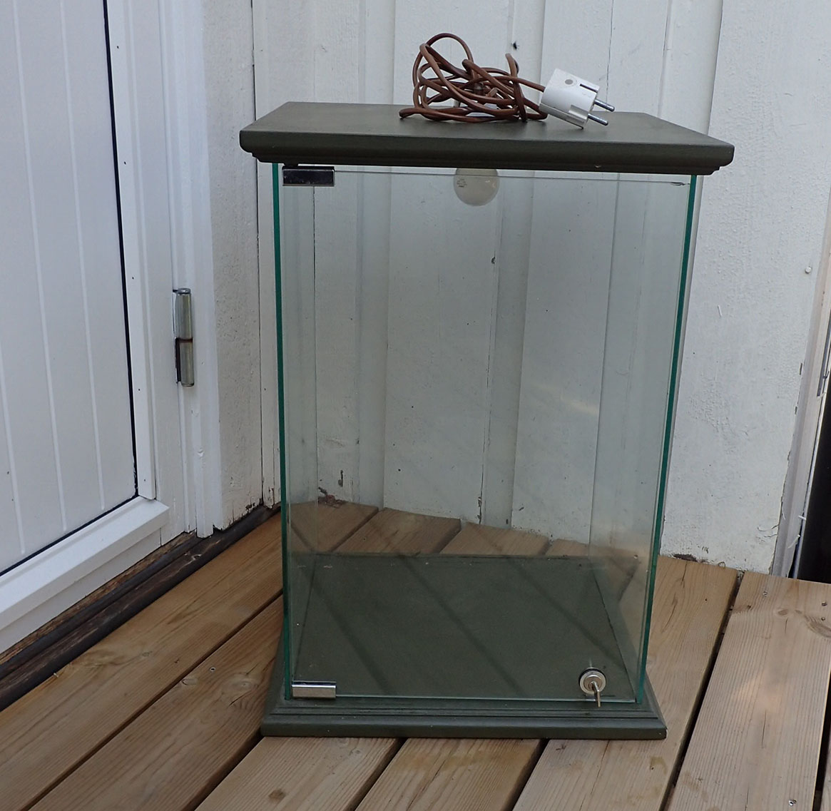 - Dette låsbare monteret er perfekt å sette en tysk hjelm eller en høylue i. Men man kan også legge noen dyre medaljer og merker i bunnen. Hva som helst som trenges å låses inn og beskyttes mot støv og tyver.
