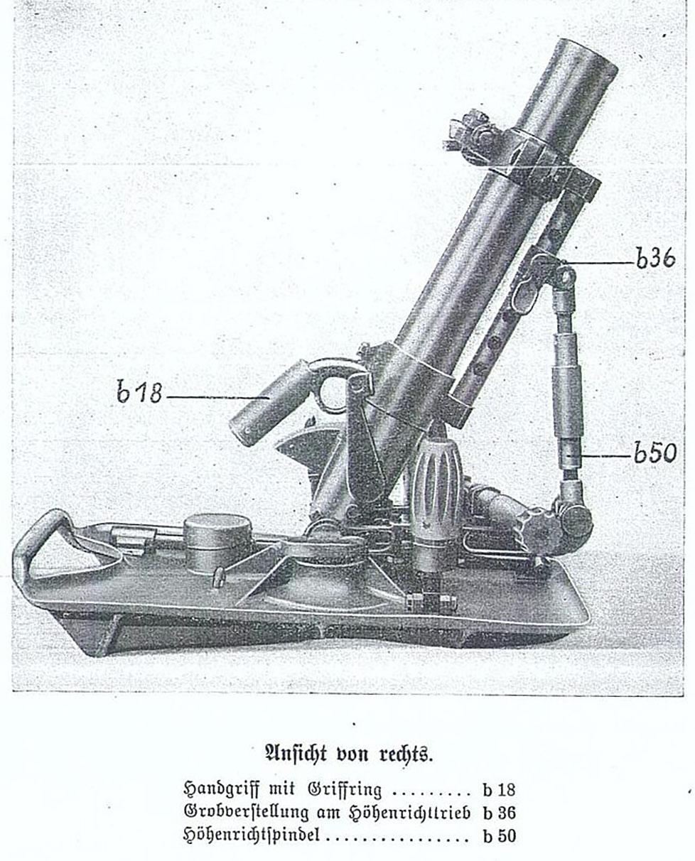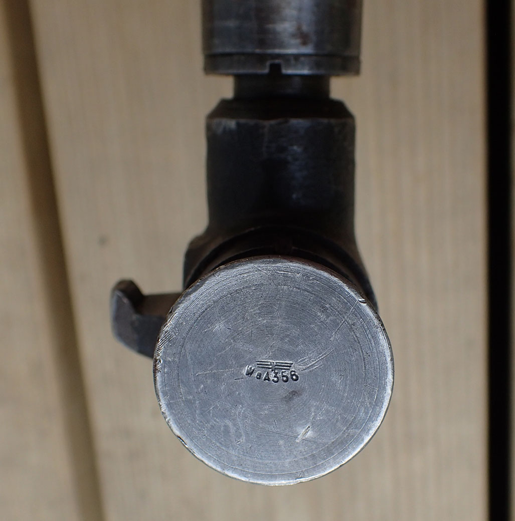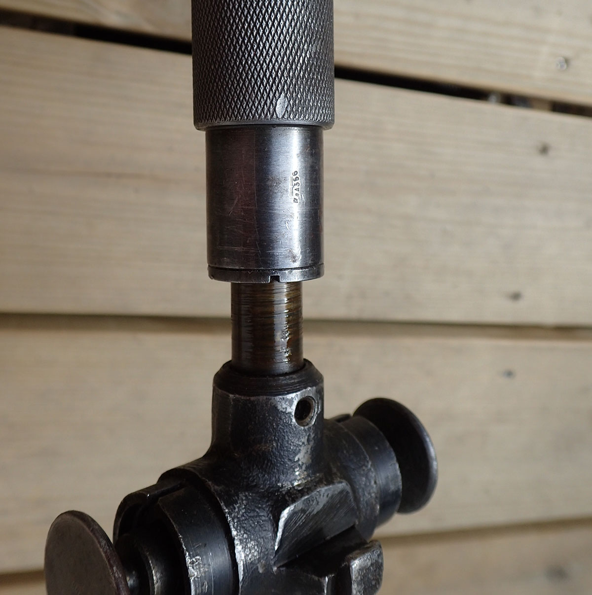 Höhenrichtspindel (Høydejustering-stag) til 5 cm. granatwerfer 36. Blånert. Jeg har funnet 5 x Waffen Amt. 356 på staget.