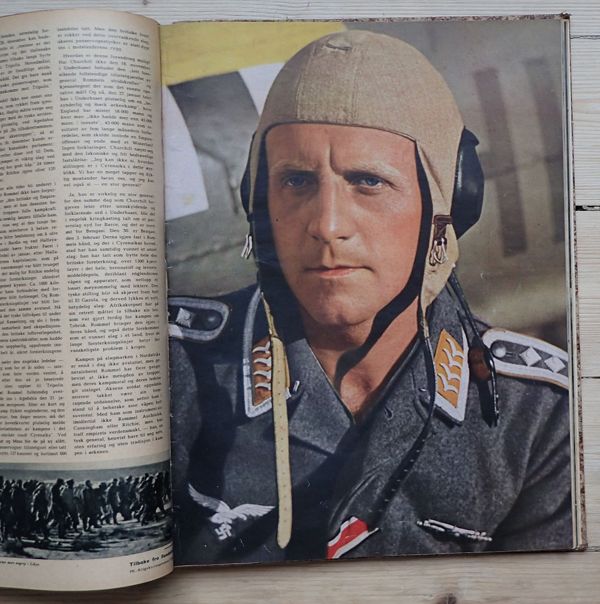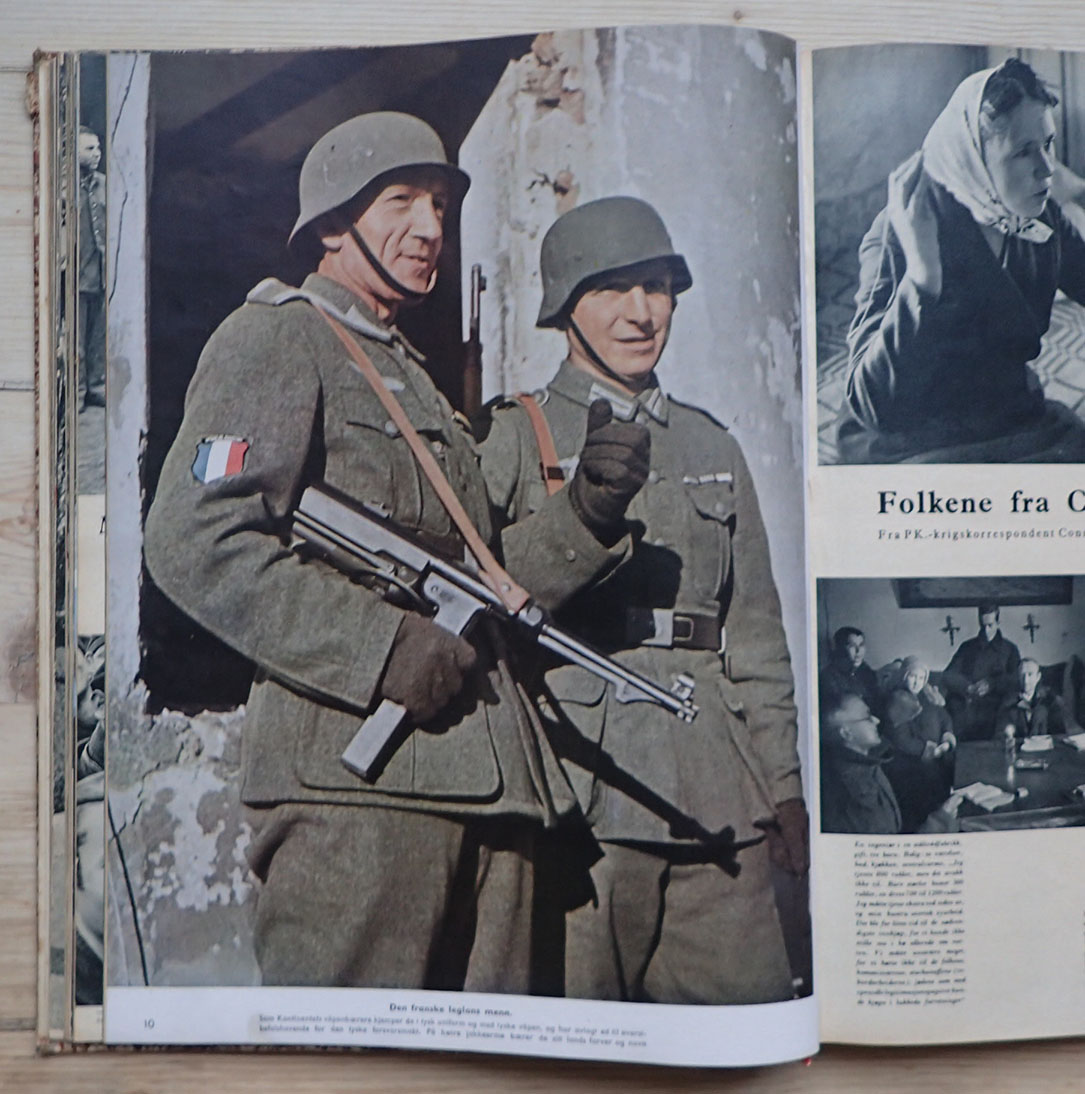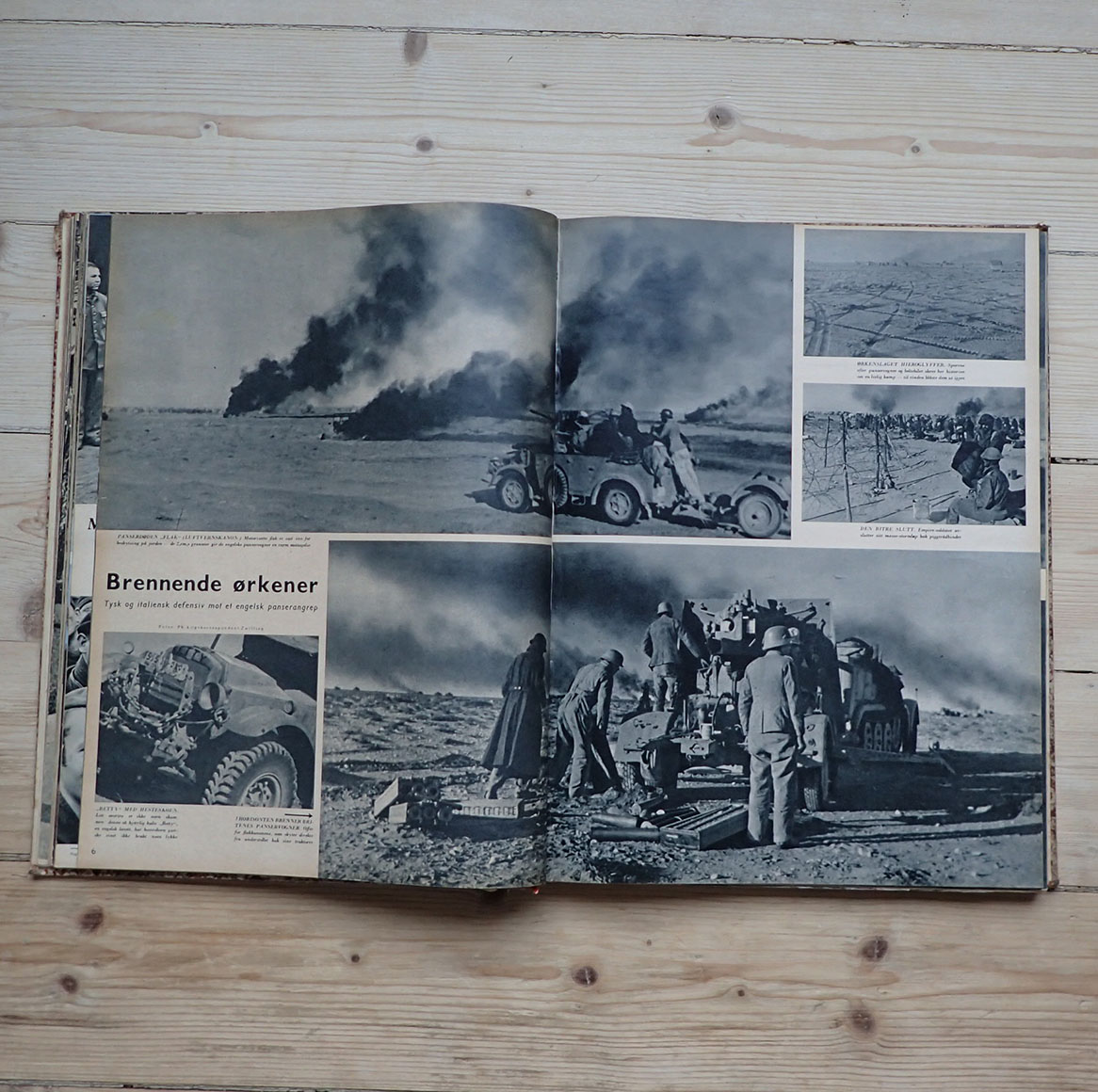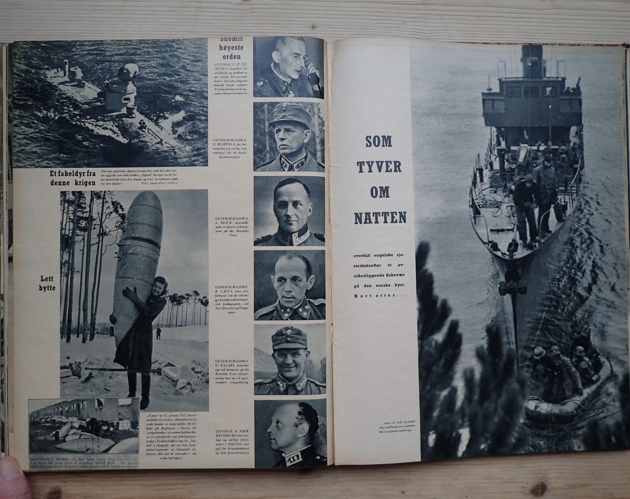 Innbundet 8 blader av «Signal 1942 I». Første blad er datert 1. Januar 1942. Siste blad er datert 2. April 1942. Det vil si at boken inneholder 8 blader og at det kom ut 2 blader i måneden. Jeg har bladd i hele boken og fant rundt 6-7 blader med små rifter og ett med en stor rift ellers er resten i meget pen stand. Ett blad på tysk.