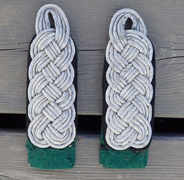 - Disse skulderklaffene har jeg hatt i min samling i mange år og de ble kjøpt av en av Norges største NS politi samlere. Disse har vært brukt av en norsk major i Statspolitiet (Kjøper får navnet på samleren). Sannsynligvis på grunn av mangel på Statspoliti major klaffer som er helt sorte under, så har disse blitt tatt i bruk. Hva jeg har funnet ut, er at dette er ett par litt sjeldne Luftwaffe Major Verwaltung skulderklaffer. Men som skrevet, dette paret har vært brukt av en norsk Statspoliti major. Selv kjøpte jeg dette settet av selger for kr. 6000,-.