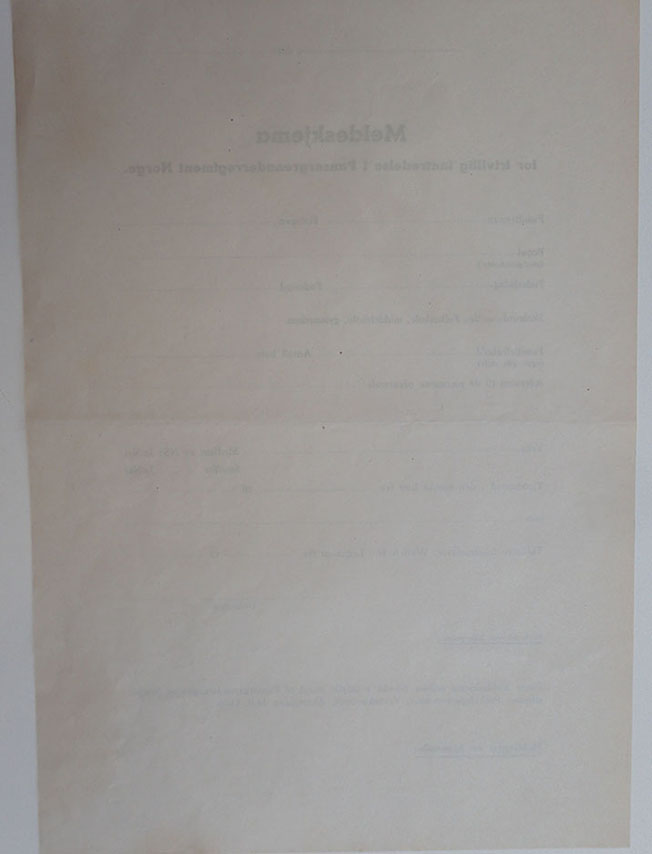 Meldeskjema for frivillig inntredelse i Pansergrenaderregiment Norge. antall