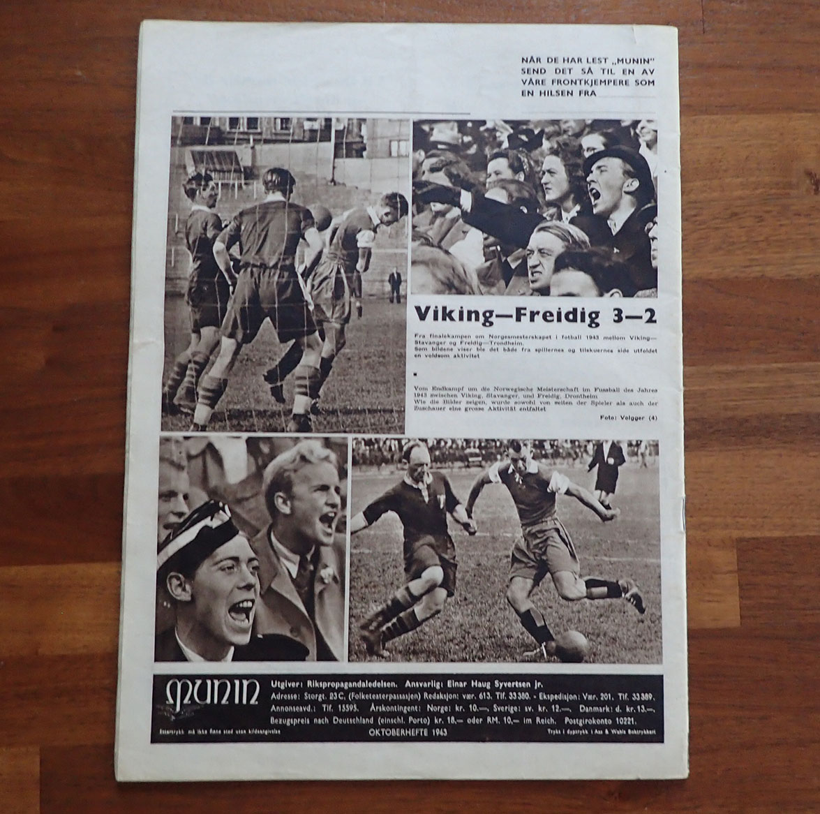 MUNIN. OKTOBER 1943. NS billedmagasin i stort format – 35 x 25,5 cm. Masse fine bilder og artikler.