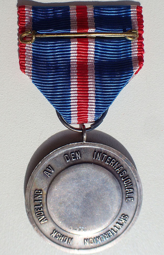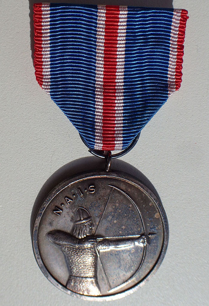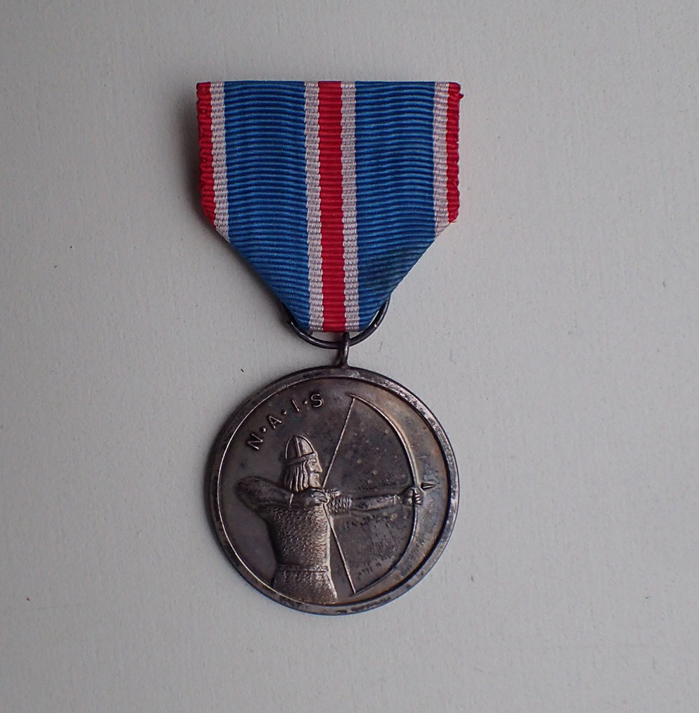 N.A.I.S. medaljen i sølv. Innstiftet 1939. Medaljen er produsert i sølv og stemplet bak EIK 830 S. Med nål bak på båndet.