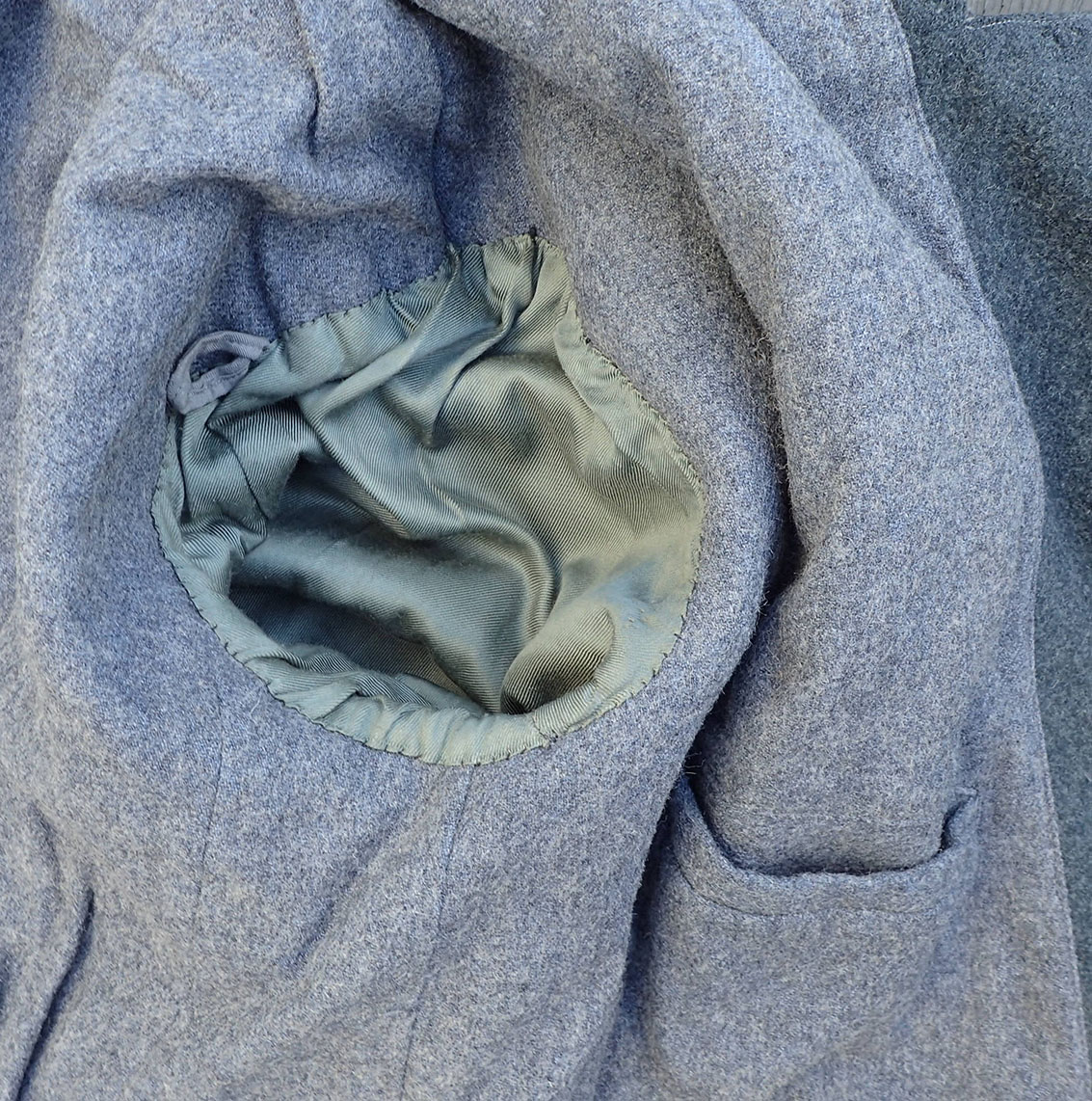 Frakken har en rep. på begge skuldrene og litt i halsen (se nærbilder) ellers i meget pen stand.