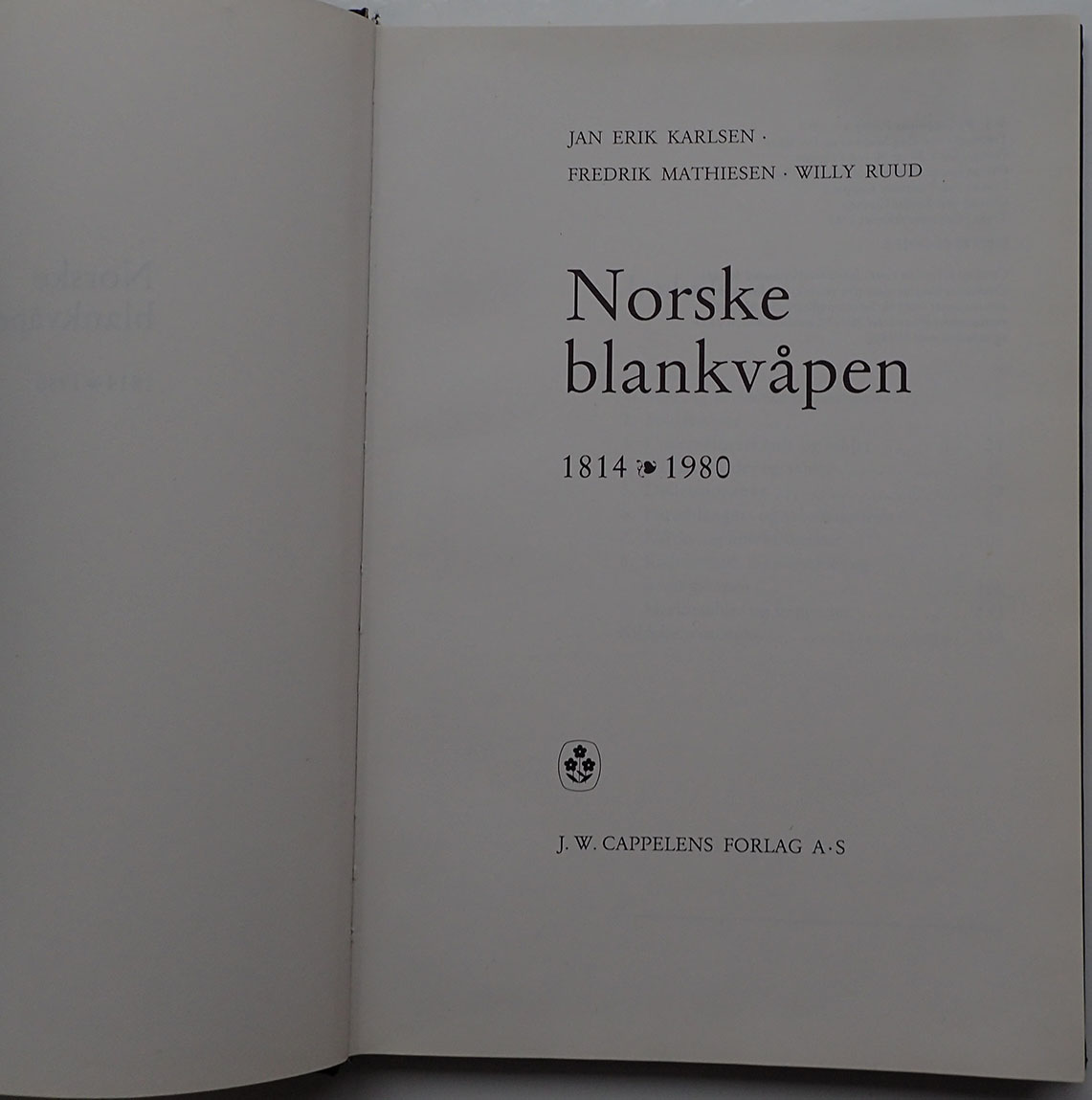 Norske blankvåpen 1814-1980. J. W. CAPPELENS FORLAG A.S. 1982. 152 sider og med stive permer.