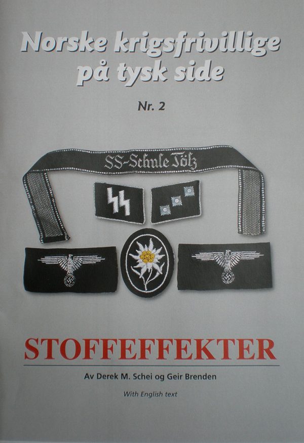 Derek M. Schei/Geir Brenden. Norske krigsfrivillige på tysk side. Nr. 2. STOFFEFFEKTER. Tønsberg 2009. 100 sider. Med STIVE permer med flat rygg og med glatte blanke sider. Boken tar for seg alle kjente norsk-og tyskproduserte stoffeffekter båret på SS uniformen. Boken inneholder flere hundre bilder hvorav samtlige SS stoffeffekter brukt av nordmenn er avbildet. Samtlige stoffeffekter avbildet har tilhørt norske frontkjempere. Boken inneholder en mengde originale fotos fra Geir Brendens arkiv, som aldri har vært publisert tidligere. I boken følger det en kort beskrivelse og gjennomgang av alle avdelinger nordmenn kjempet i og hvilke stoffeffekter de brukte.