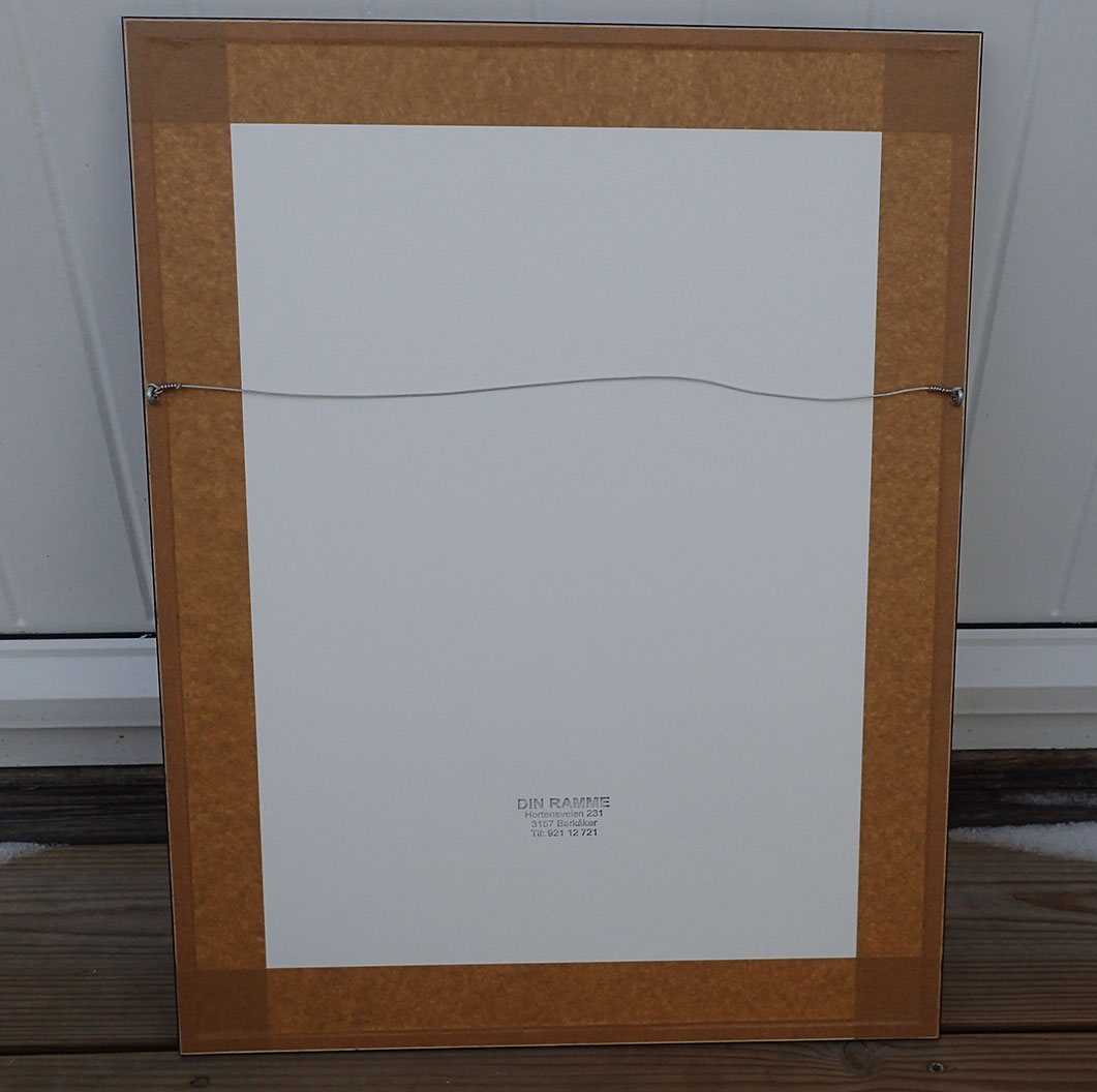 - Denne nydelige plakaten har jeg akkurat fått rammet inn hos en dyktig og annerkjent rammemaker. Med en tidsriktig ramme med paspatour og syrefri bakplate og spesialglass uten gjenskinn. Selv med gode rabatter så kom denne innrammingen på kr. 2000,-.