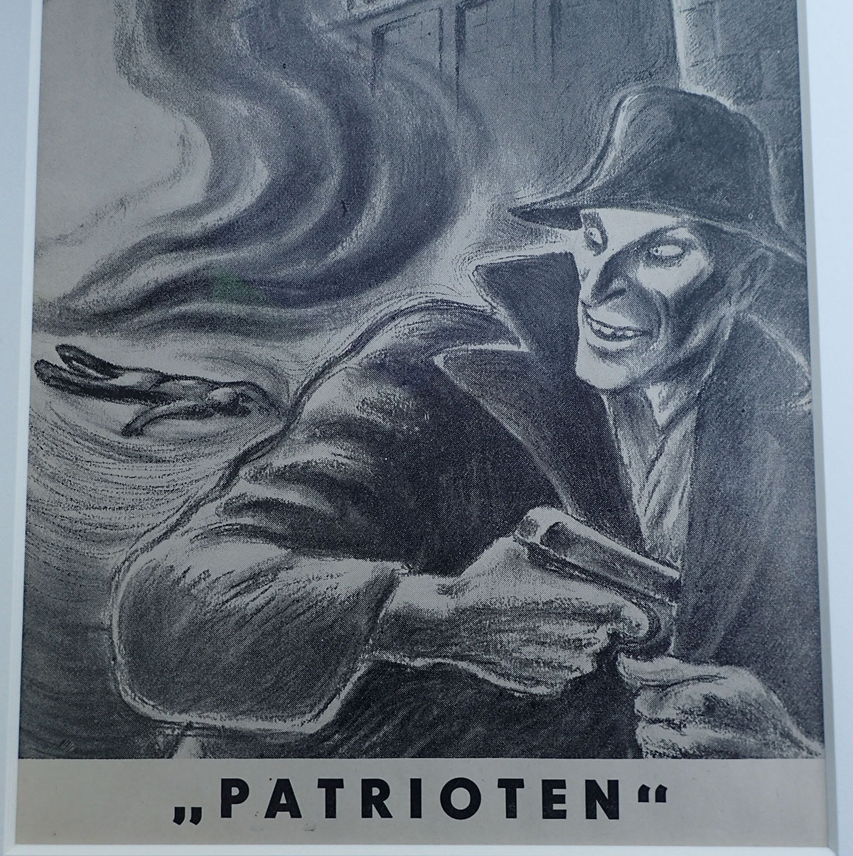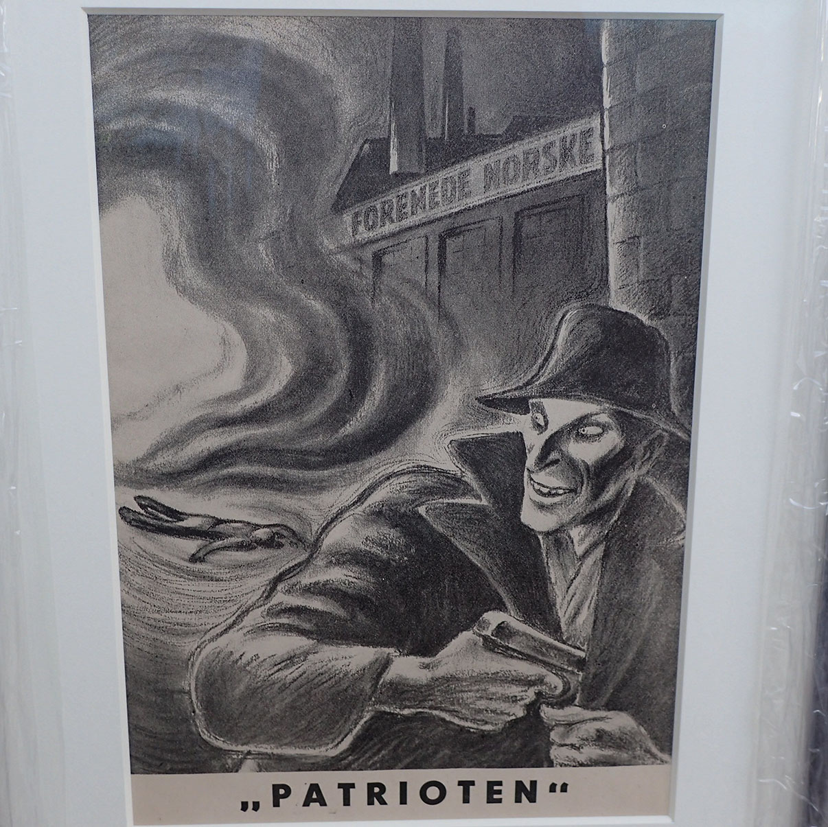 NS PLAKAT. «PATRIOTEN» 1945. Mot sabotasje. Denne plakaten skulle være første i en serie men siden denne er en av de siste NS plakatene som ble trykket, så var det kun denne som kun ut.