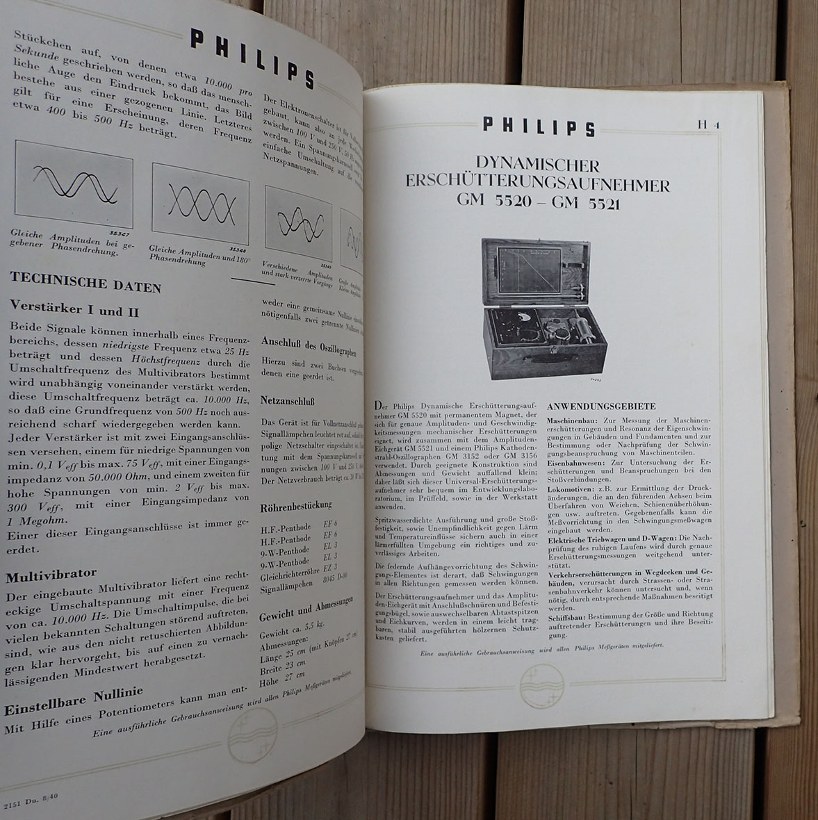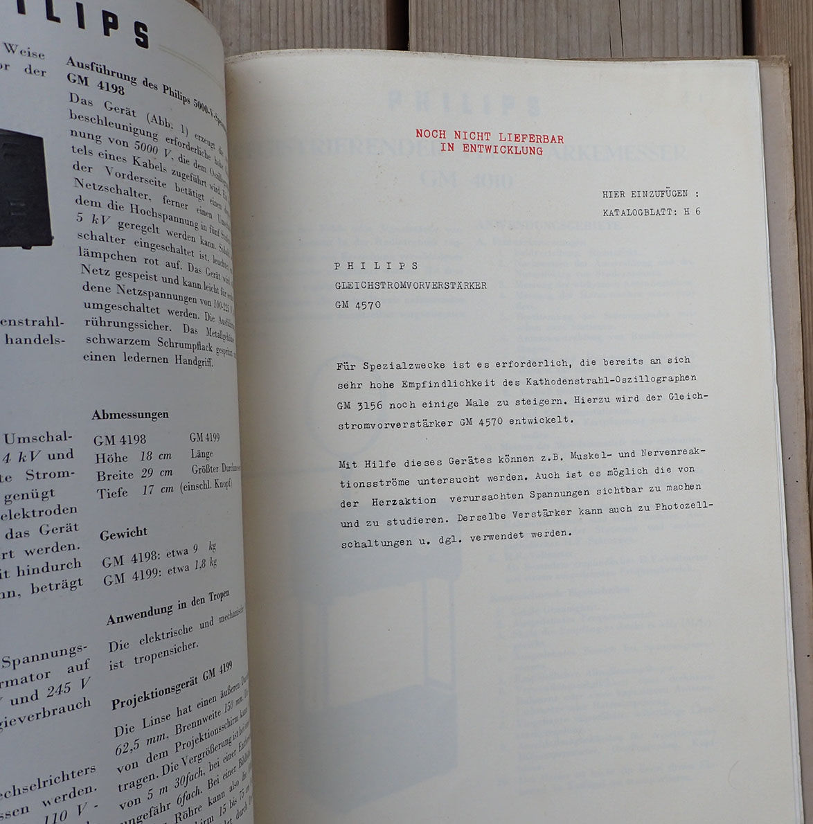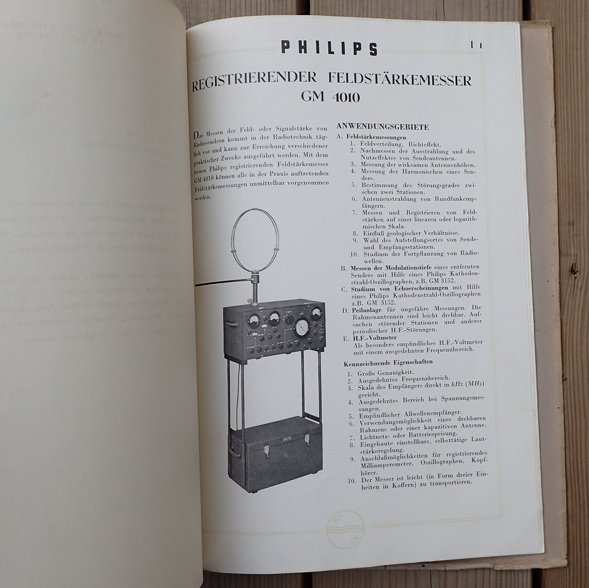 PHILIPS MESSGERÄTE katalog fra 1940. Trykket hos Philips i Eindhoven i 1940. Trykket på glatt kvalitets papir med bilder og teknisk beskrivelse av alle produktene. Også flere maskinskrevne A4 ark er satt inn i folderen. Man kan ta ut og sette inn ark da det er metall klips i ryggen som kan løsne arkene.