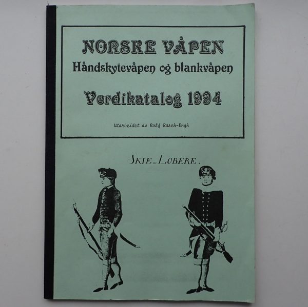 Rolf Rasch-Engh. NORSKE VÅPEN. Håndskytevåpen og blankvåpen. Verdikatalog 1994. I A4 format. 74 sider med litt stivere permer. I heftet er det en oversikt over alle norsk/danske og norske skytevåpen og blankvåpen og verdien på samtlige, tilbake i 1994. Med tegninger og bilder av de.