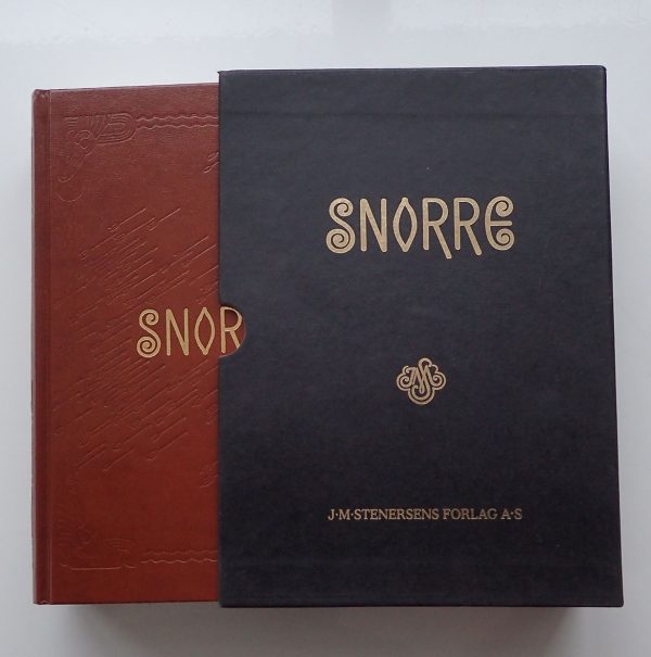 SNORRE KONGESAGAER. I 1 bind. J. M. Stenersens Forlag A/S. OSLO 2006. Med stive permer med rød skinn? med gull trykk SNORRE. Boken er rikelig illustrert med Gerhard Munthes kobberstikk og tresnitt.
