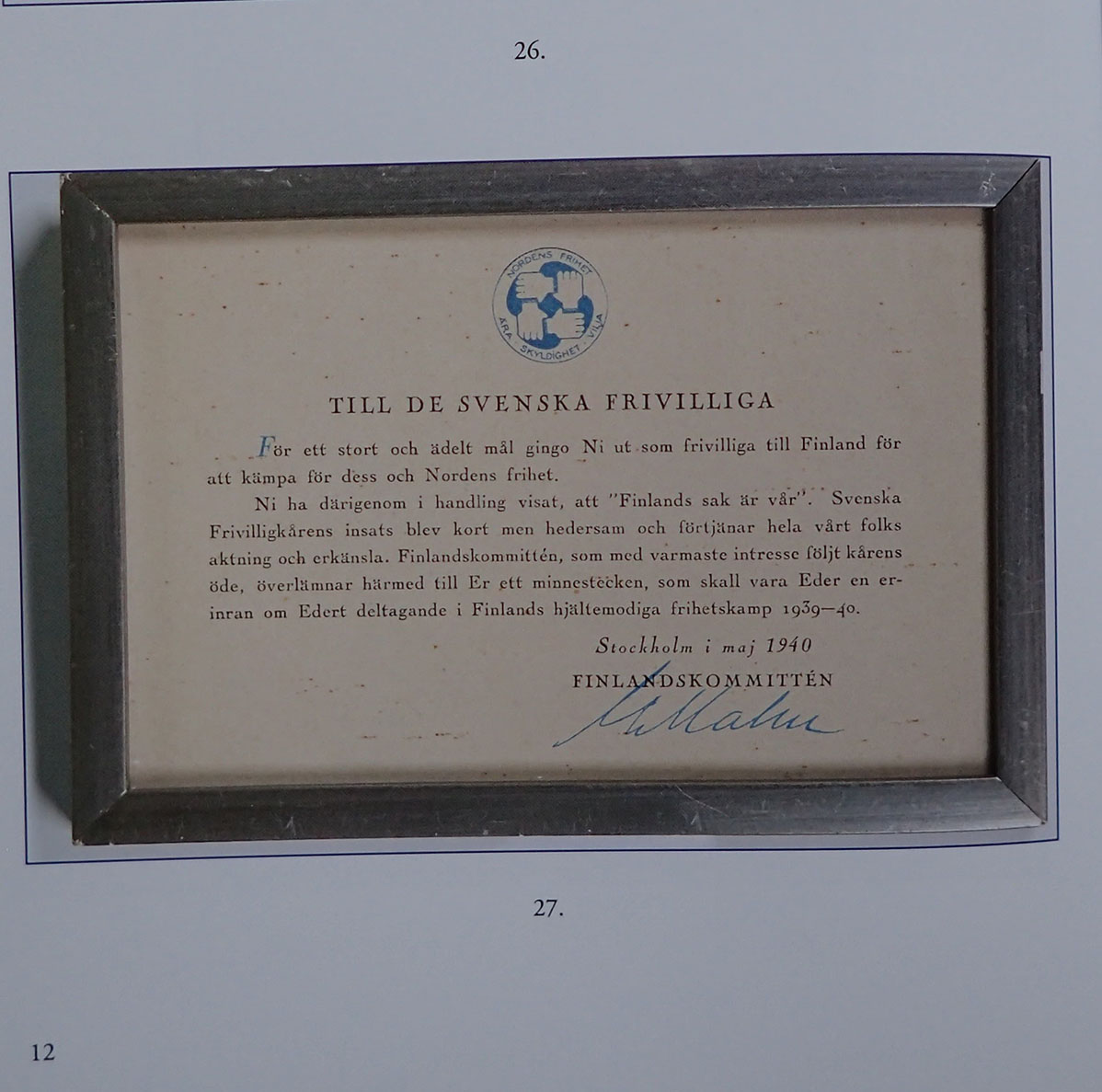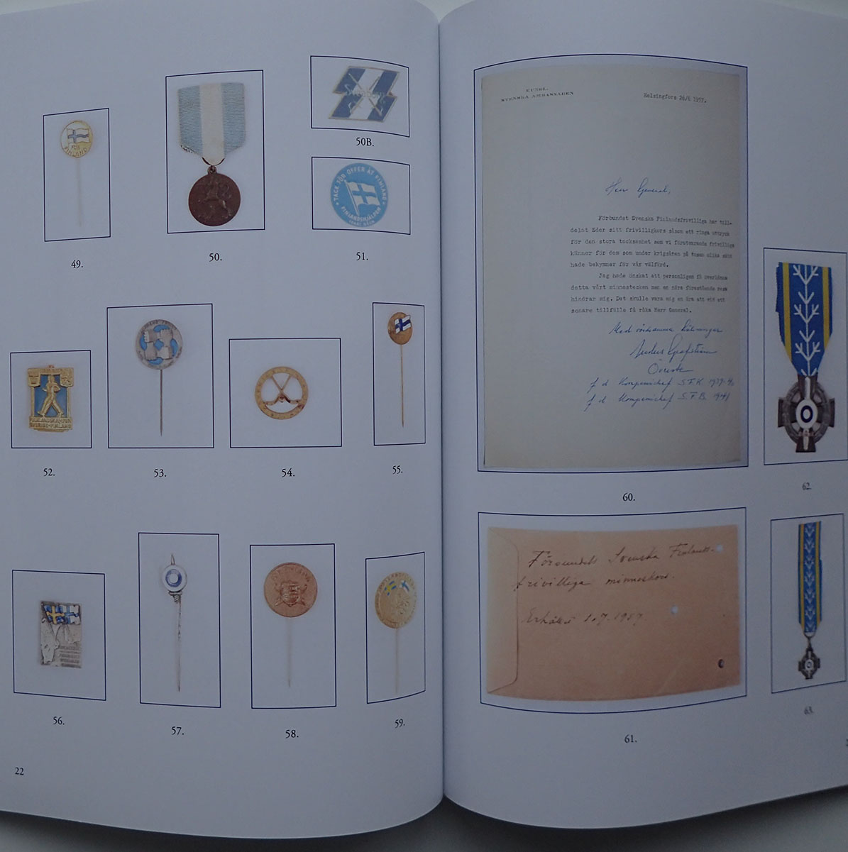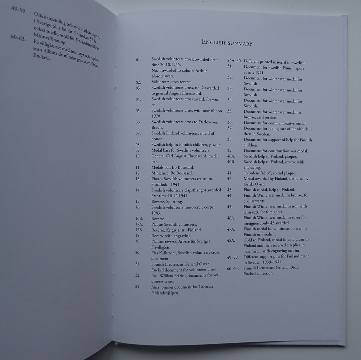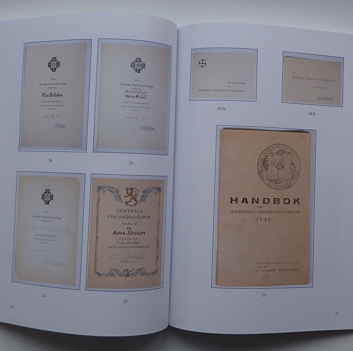 Boken tar for seg medaljer, merker og nåler, tildelingsbevis og diplomer. Mange av de samme som nordmenn som tjenestegjorde i vinterkrigen også fikk.