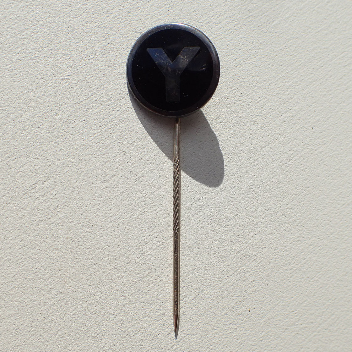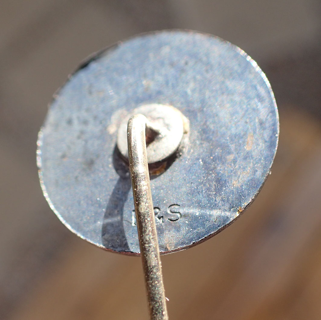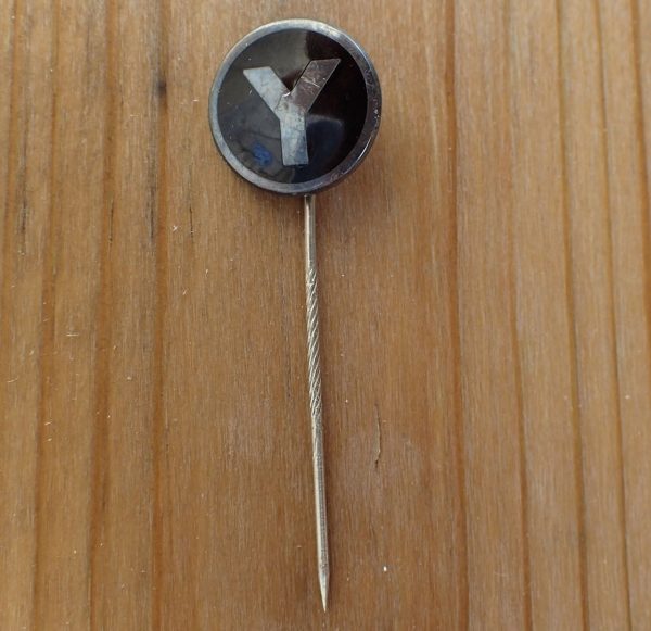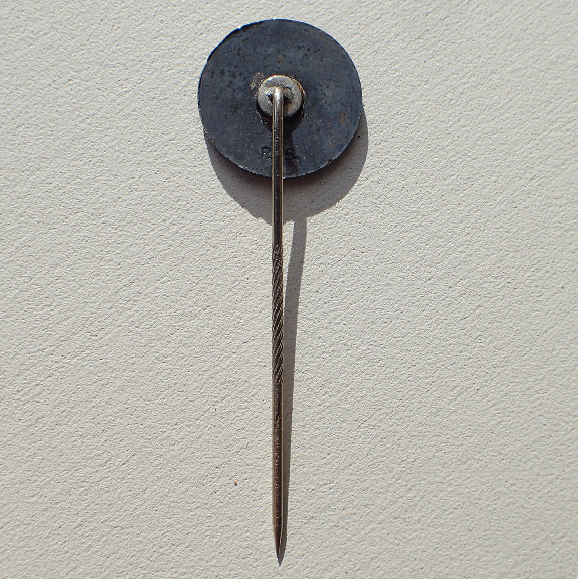 TYSKLANDSBRIGADE NÅL – 5th Yorkshire Division. Produsert i nysølv med sort emalje. Nålen har mørk gammel patina. Bak med tvinnet nål og stemplet med produsenten R & S. (Rudolf Souval & Sohn).