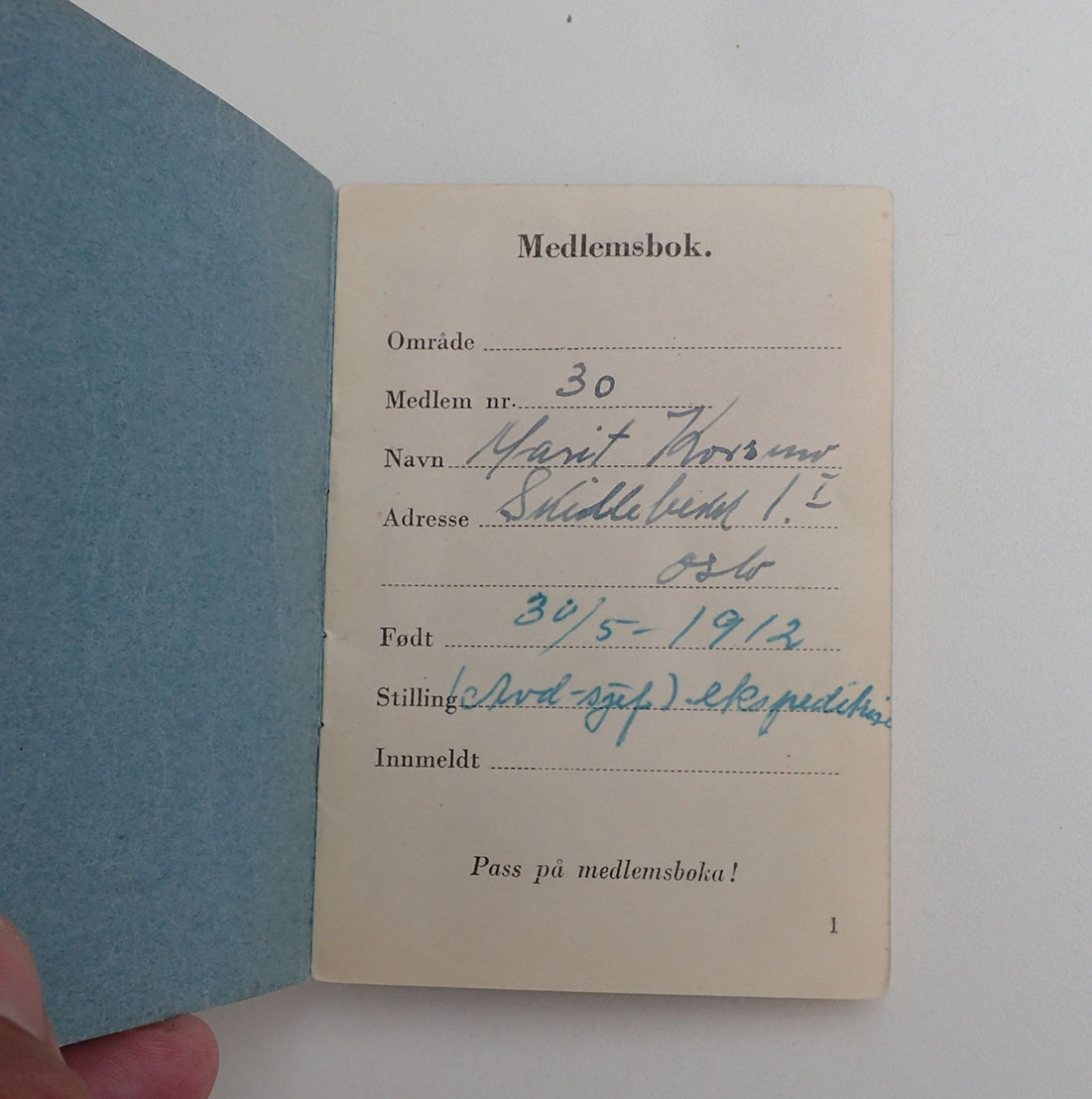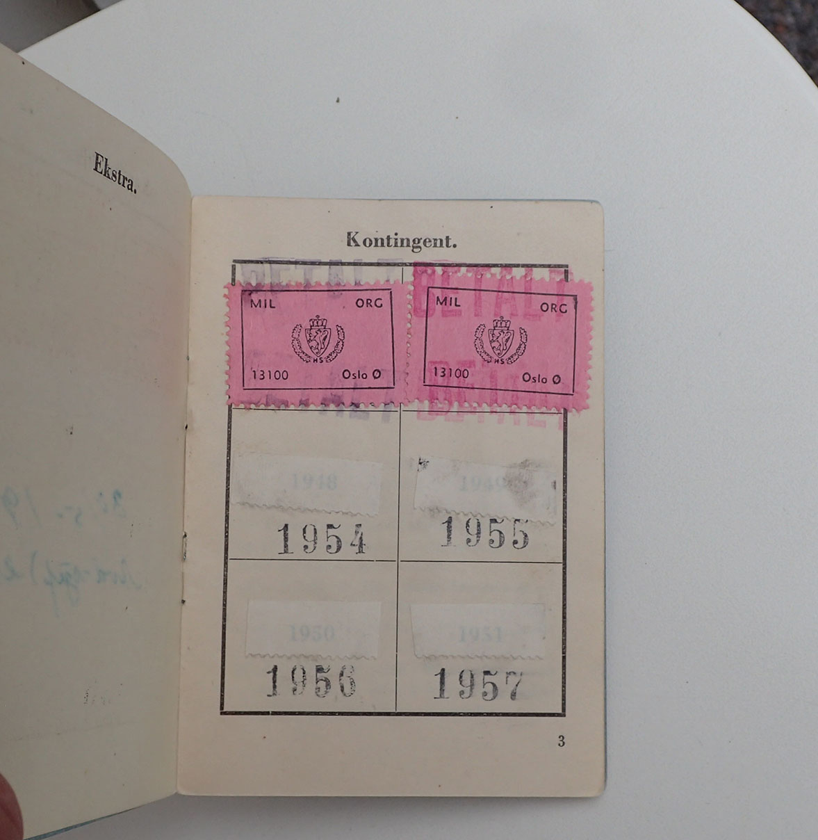 - Mil.org-foreningen 13100 Oslo Øst Medlemsbok. I boken skal det klistres inn Kontigentmerker fra 1946 og utover. Disse årstallene er overstrøket og Margit har betalt kontingentmerker fra 1952 og 1953. I meget pen stand.
