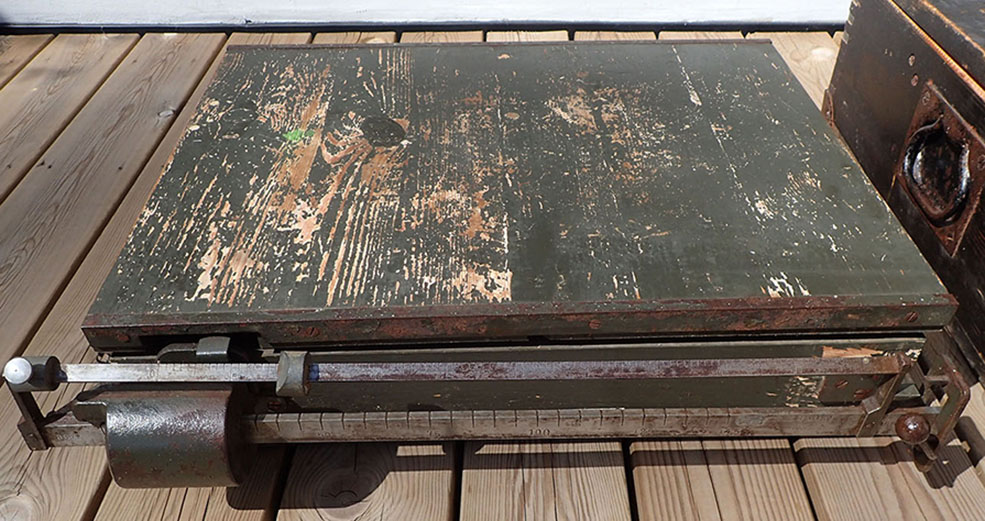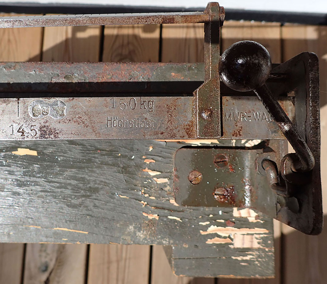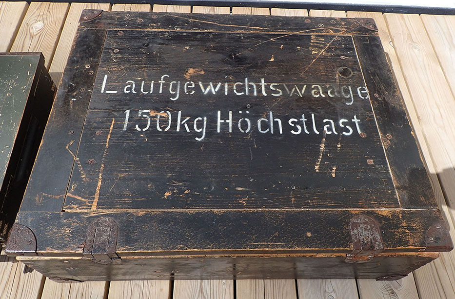 – Dette er en tysk universal vekt som kunne veie saker helt opp til 150 kilo. Det være prosjektiler og granater, ammunisjon, våpen, utstyr, matvarer i striesekker osv.